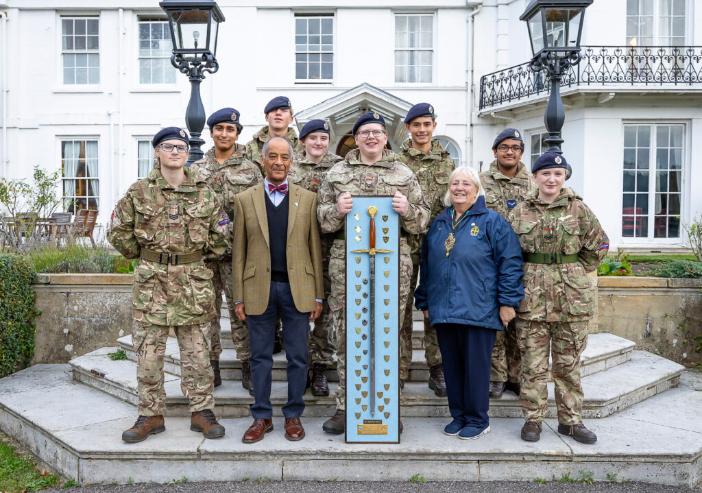 When the late Marshal of the Royal Air Force, Lord Elworthy KG GCB CBE DSO MVO DFC AFC retired in 1978 as Lord-Lieutenant of Greater London and President of the Reserve Forces’ and Cadets’ Association for Greater London, he presented his own Battle of Britain Commemorative Sword as a trophy to be competed for annually by cadets of the three services within Greater London.